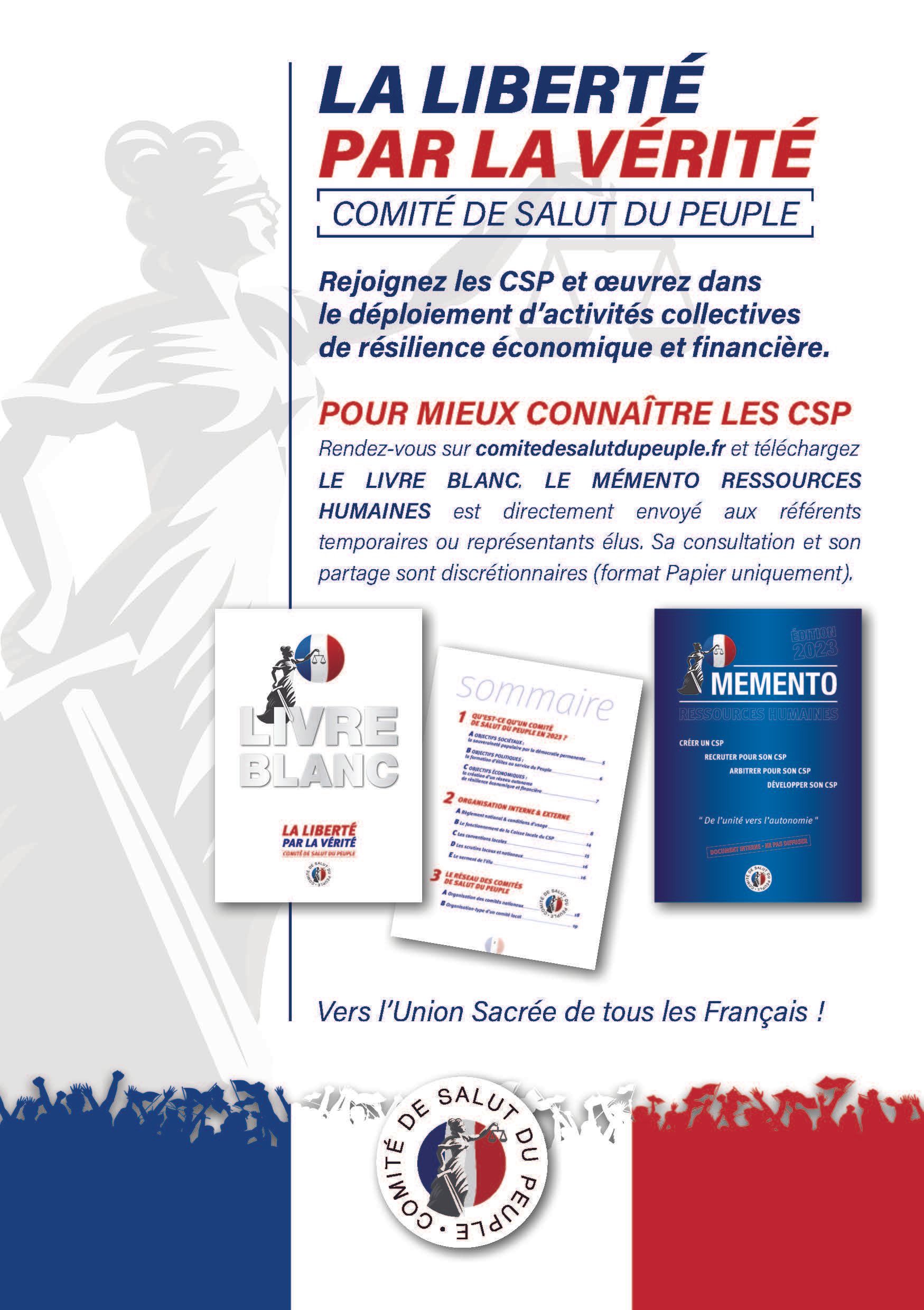 Mettre sur pied 577 CSP regroupant les citoyens résistants afin d'organiser leur résilience alimentaire, économique, financière et sociale (Santé et Education).